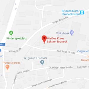 Die Entstehungsgeschichte der Sektion Bruneck reicht bis in die Mitte der 60er Jahre zurück. Schon zur damaligen Zeit hat man die Notwendigkeit erkannt, einen organisierten Rettungsdienst im Pustertal auf die Beine zu stellen. Bis zur Eröffnung der Weiß-Kreuz-Stelle in Bruneck deckte das Brunecker Krankenhaus mit einem einzigen Krankenwagen das gesamte Einzugsgebiet ab.